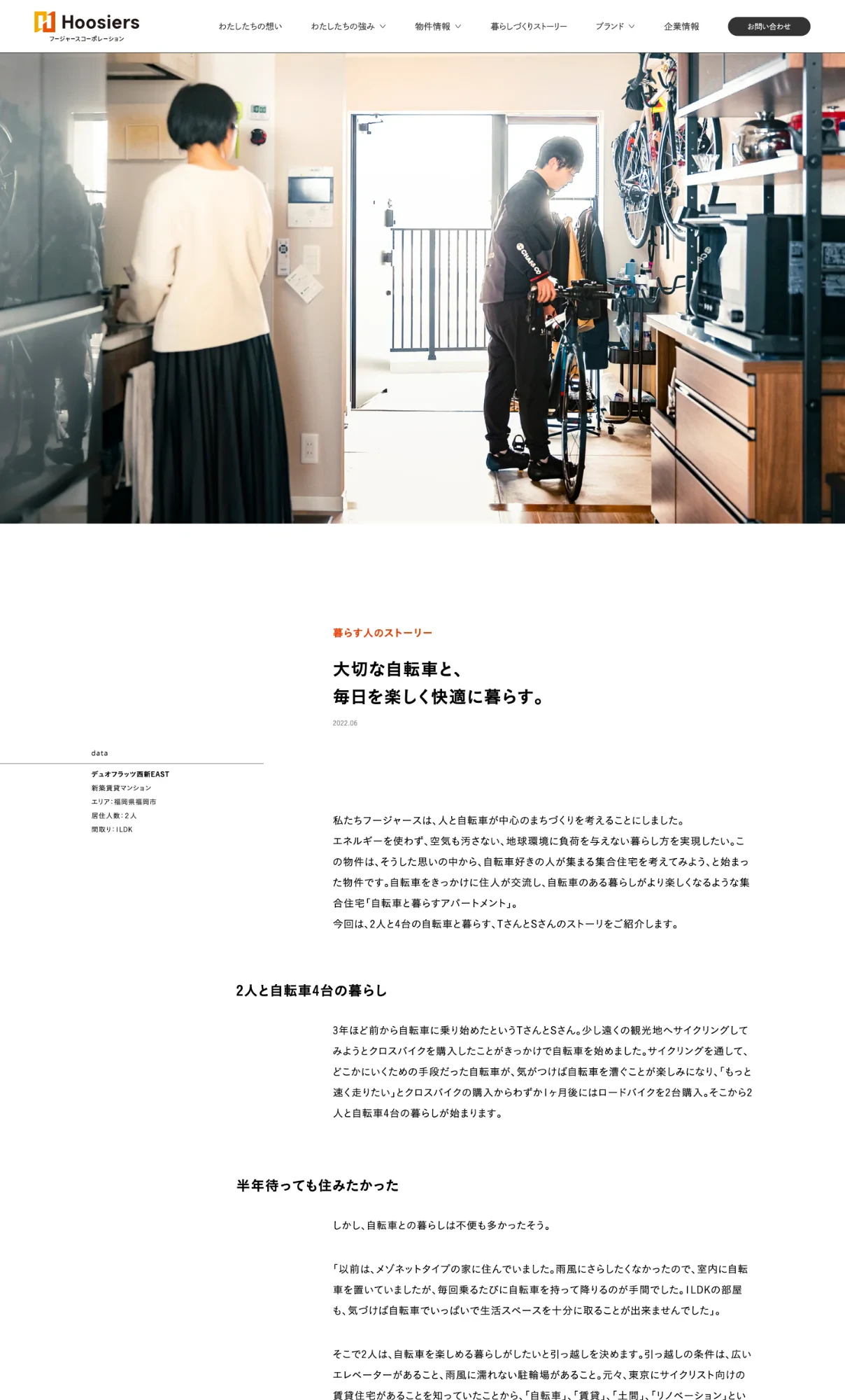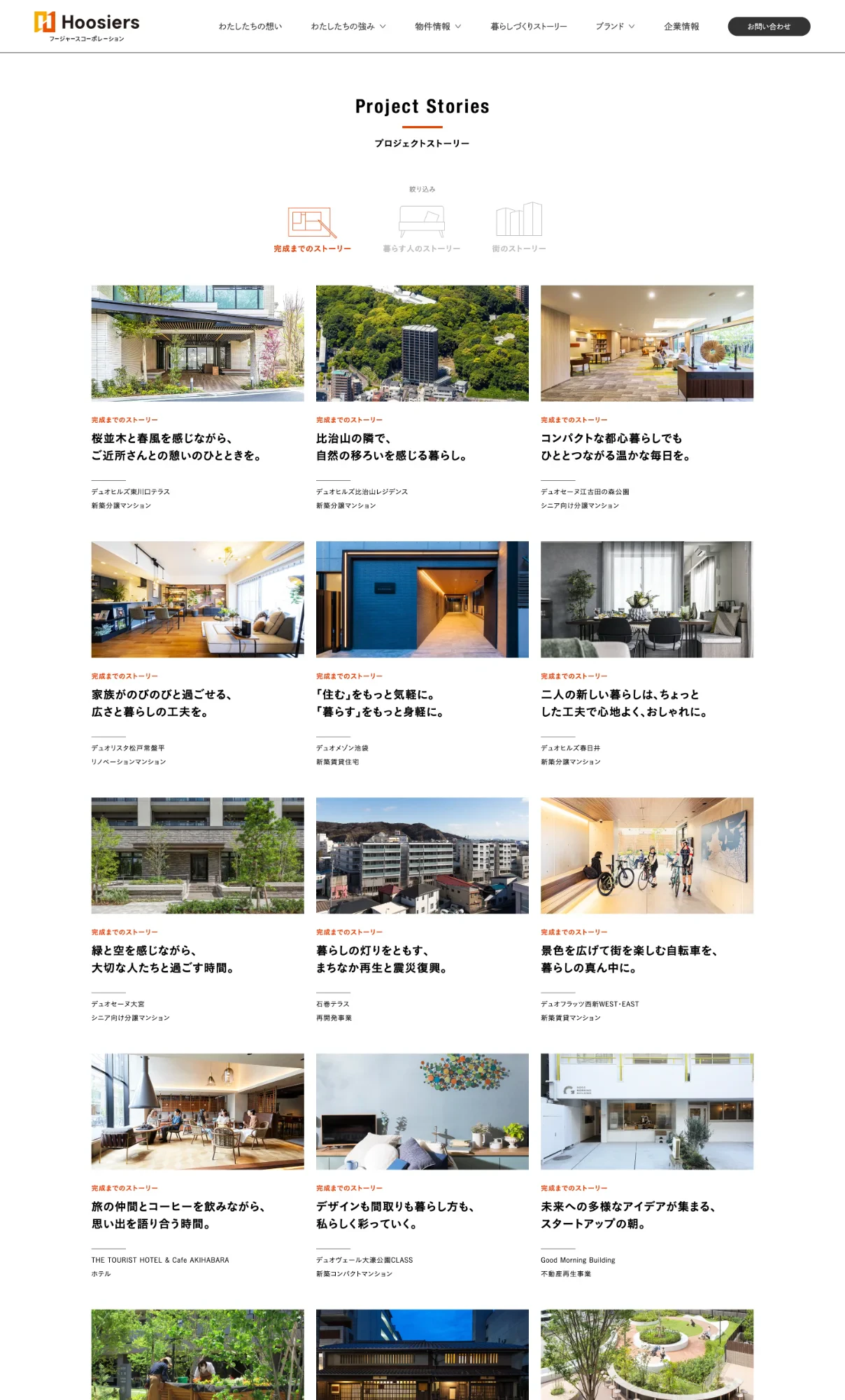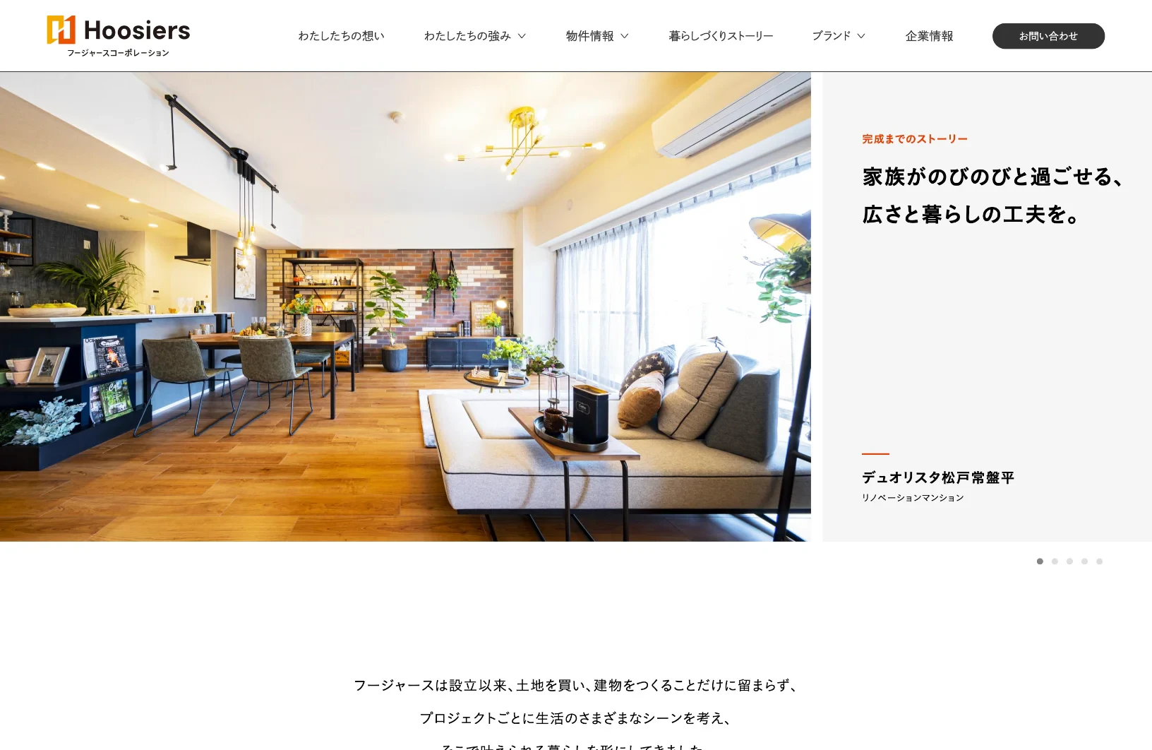 暮らしづくり メディサイト リリース 2022.06 役割 Coding 採用技術 HTML, CSS, SCSS, JavaScript, gulp, Git Coding コンテンツの管理効率を高めるため、共通パーツをコンポーネント化して再利用可能な設計としました。また、ユーザーが目的の記事に素早くアクセスできるよう、カテゴリー別のフィルタリング機能を実装しました。 URL https://www.hoosiers.co.jp/corporation/kurashidukuri/